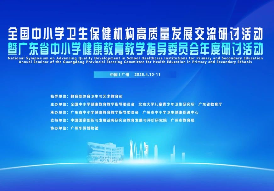 2025年4月10至11日,“全國中小學衛生保健機構高質量發展交流研討活動暨廣東省中小學健康教育教學指導委員會年度研討活動”在廣州成功舉辦。活動由教育部體育衛生與藝術教育司指導,全國中小學健康教育教學